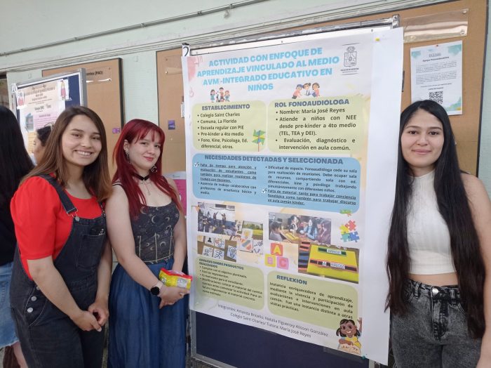 El día miércoles 13 de Diciembre se realizó la actividad de cierre del curso Integrado Educativo en niños de la Escuela de Fonoaudiología. Esta actividad se efectuó para socializar lo realizado por las/os estudiantes en los pasos prácticos de la asignatura desarrollados a lo largo del semestre académico, los cuales tuvieron un enfoque de aprendizaje vinculado al medio (AVM), metodología de aprendizaje activo que por primera vez se implementa en la asignatura.